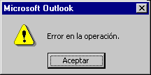 However, the required sequence of operations is not completed. Instead, Outlook (here configured for Spanish operation) fails with an error message: